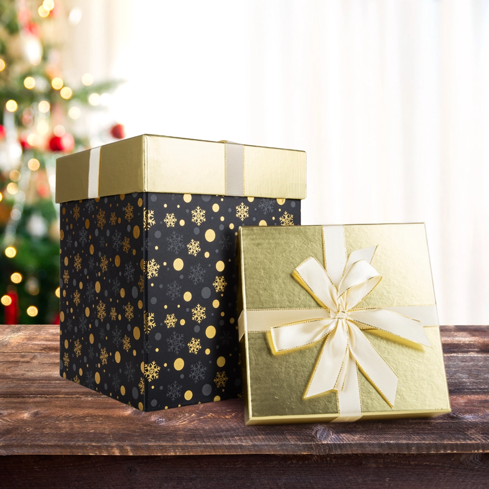 - Eleganckie duże czarno-złote kwadratowe pudełko prezentowe z kokardką - ZESTAW ZAPAKOWANY W PUDEŁKO ZE ZDJĘCIA NUMER 2